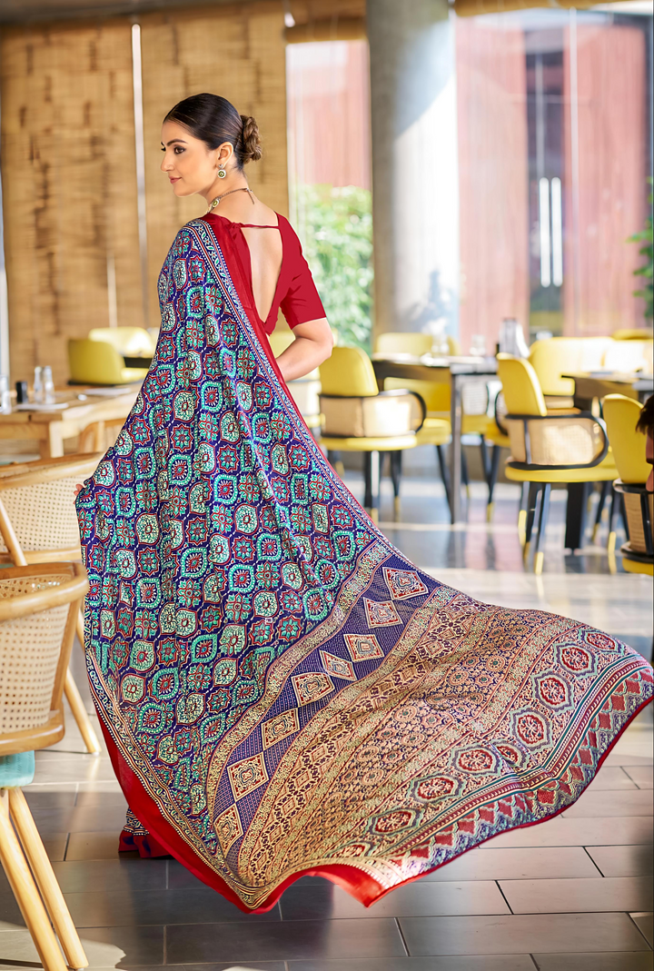 New Ajrakh Modal Silk Ajrakh Fancy Pallu Saree
