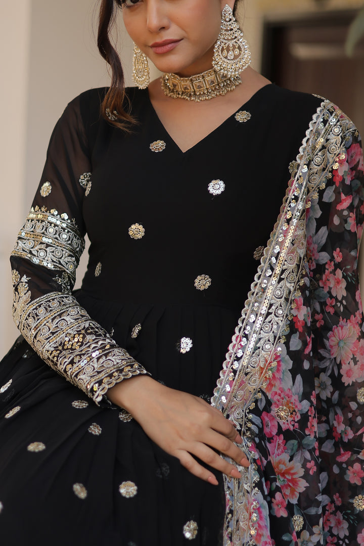 👉🏻 FABRIC & WORK:- Faux Georgette with Embroidery Zari Sequins-work