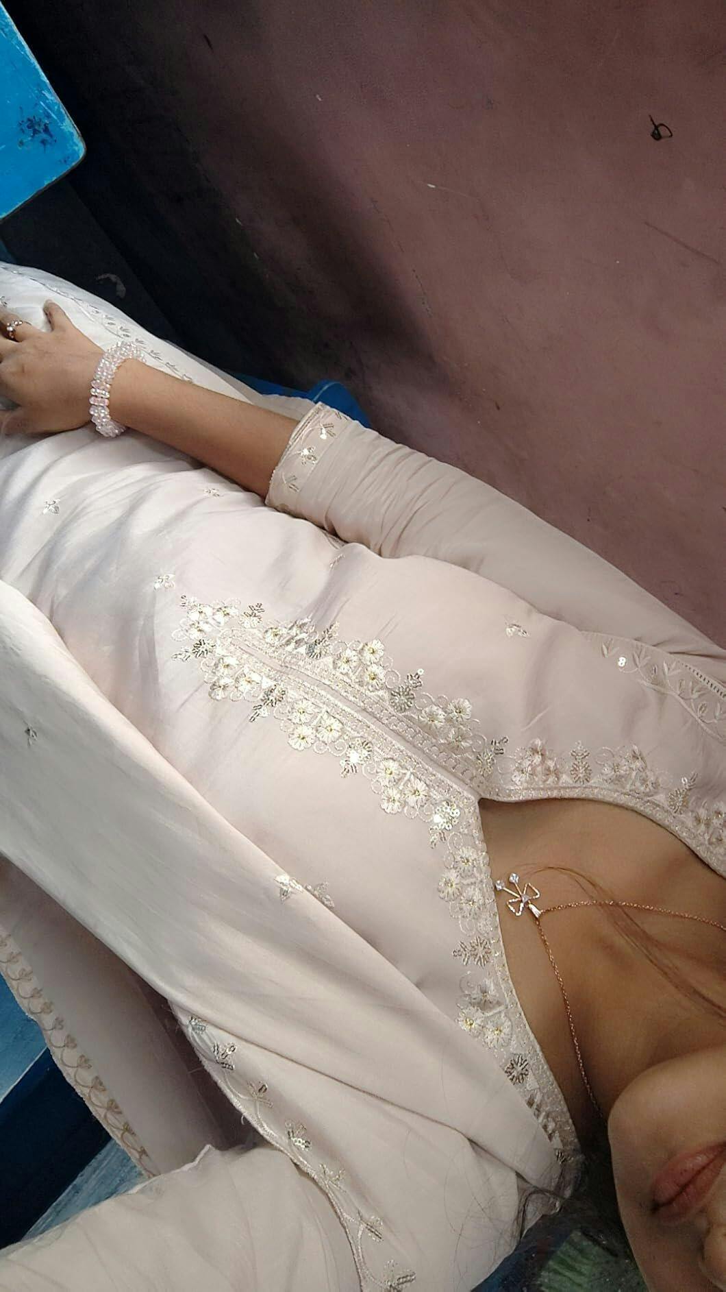 Kurta Fabric : Pure Chinon Silk Fabric With Beautiful Embroidery Sequence,jari Work On Yoke,sleeves,bottom Work
