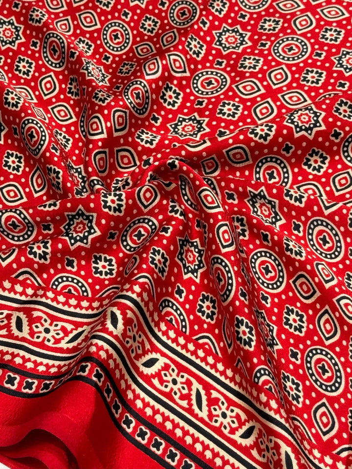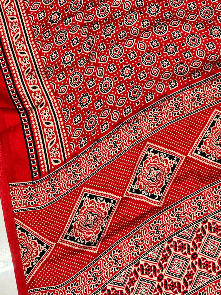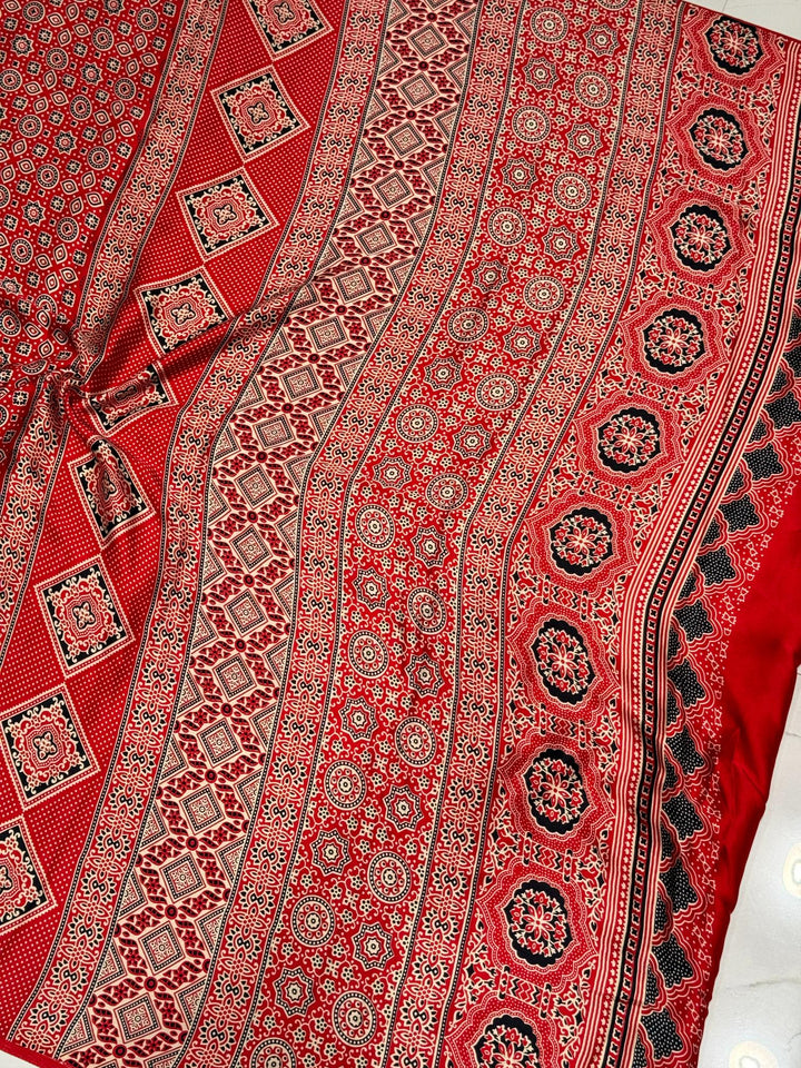 Red Ajrakh Printed Soft Modal Silk Natural Print Saree P1