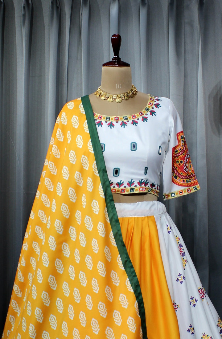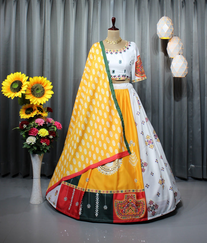Soft Butter Silk Chaniya Choli | Fancy Digital with Real Mirror Work for Traditional Wear