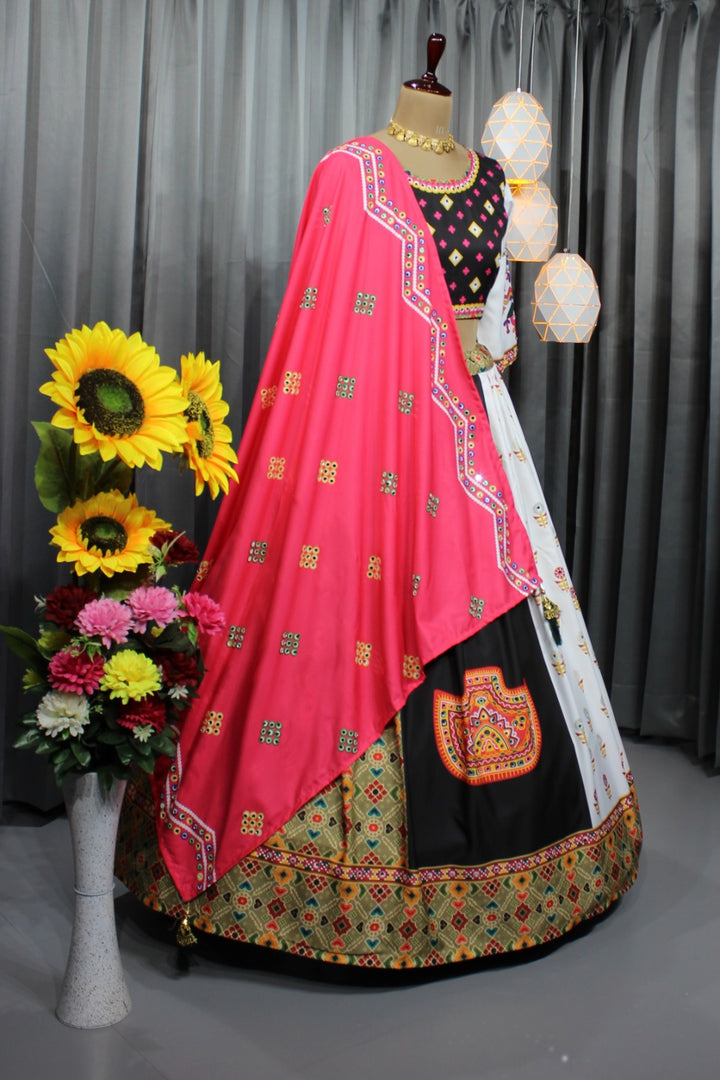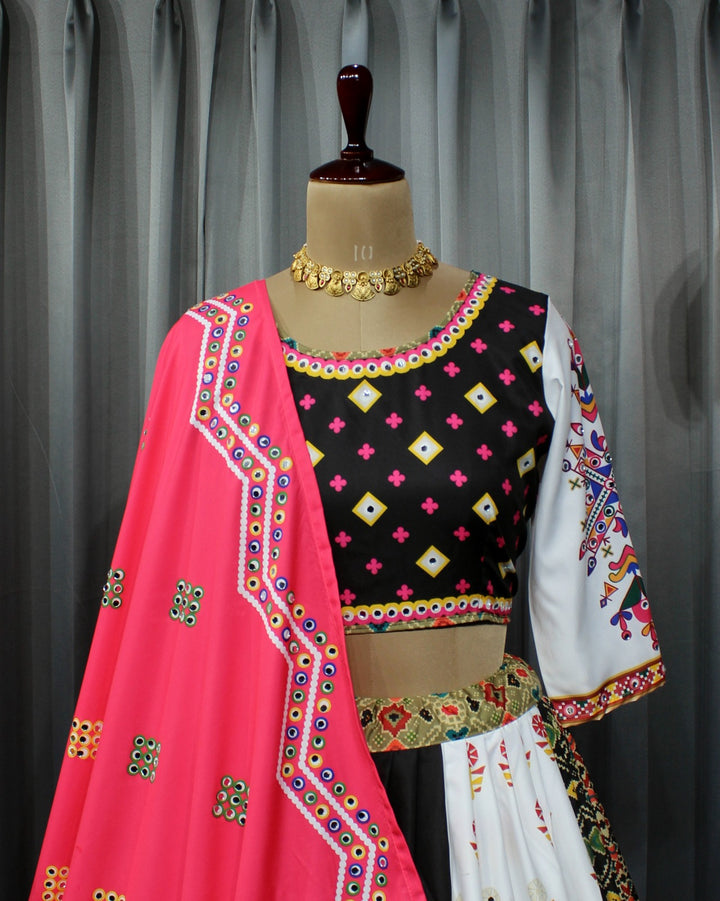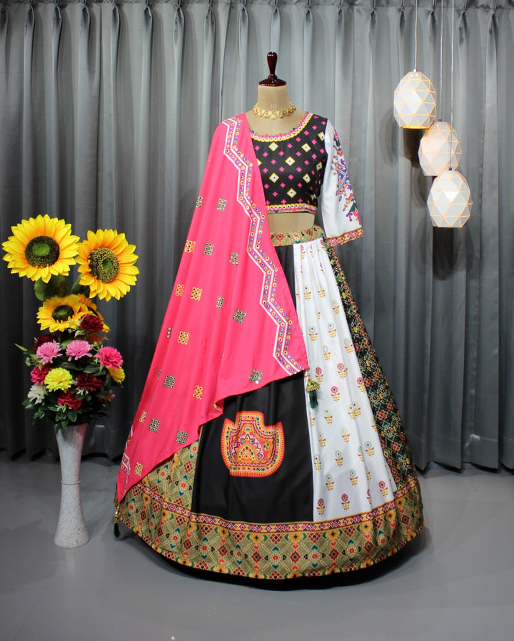 Black White Soft Butter Silk Chaniya Choli | Fancy Digital with Real Mirror Work for Traditional Wear